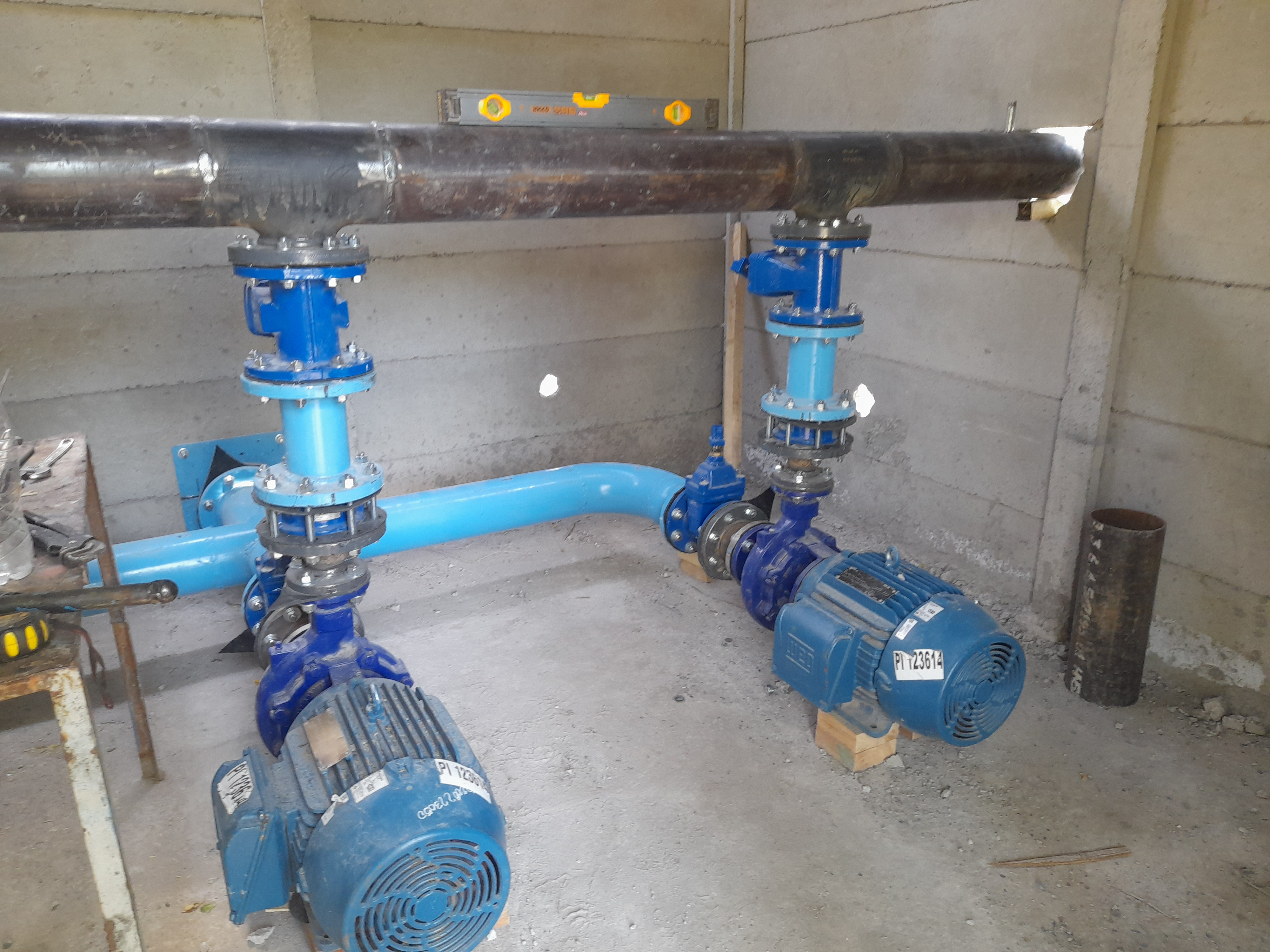 En paralelo, ya se encuentran instaladas las dos bombas de impulsión, las cañerías de entrada y salida de agua y el manifold, elemento fundamental para la correcta distribución del caudal.