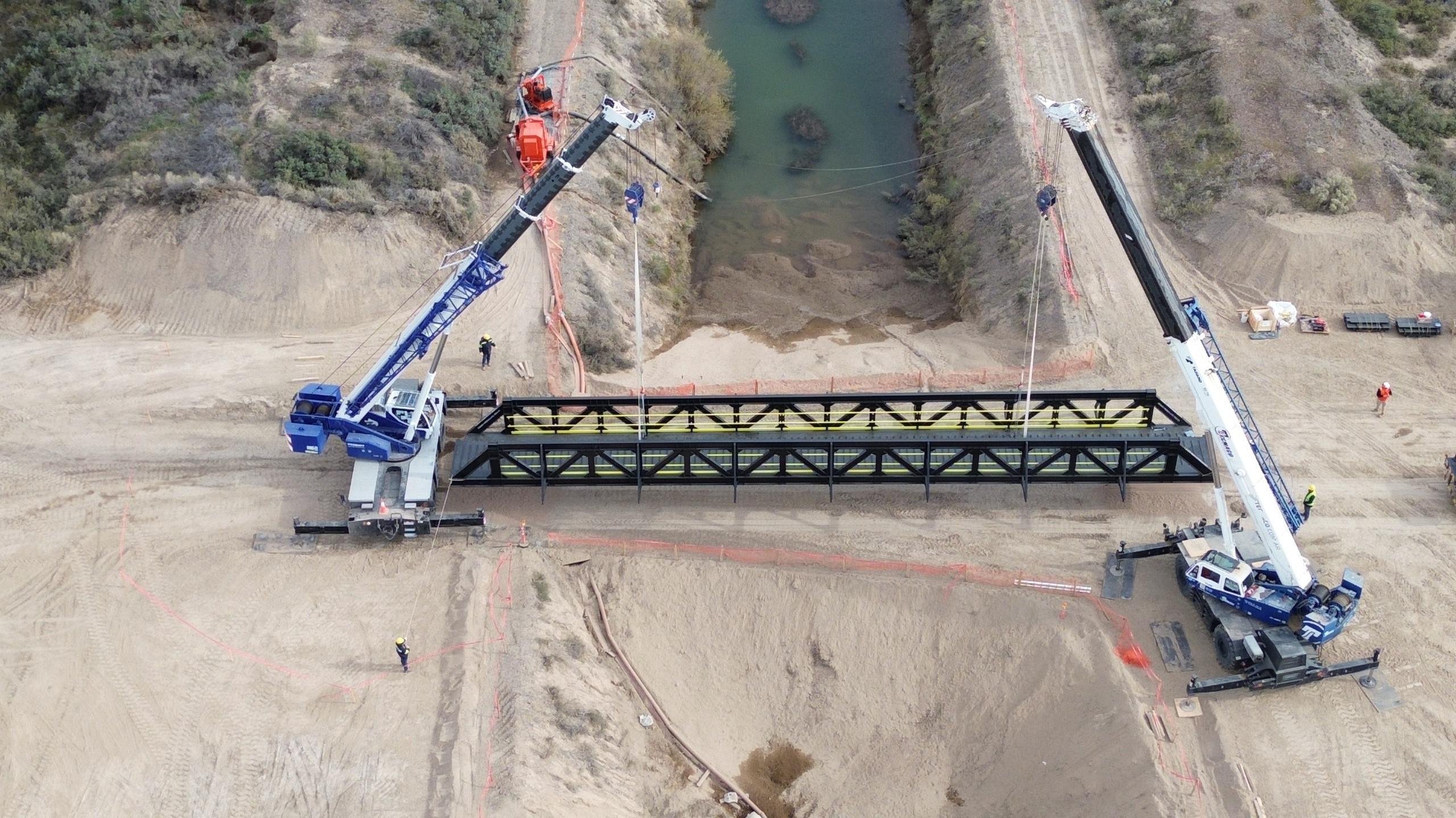 Finalizaron los trabajos correspondientes a la obra del cruce del oleoducto de Vaca Muerta Oil Sur (VMOS), bajo el canal principal de riego sobre Margen Norte, a la altura de Chimpay, donde además se instaló un puente de servicio