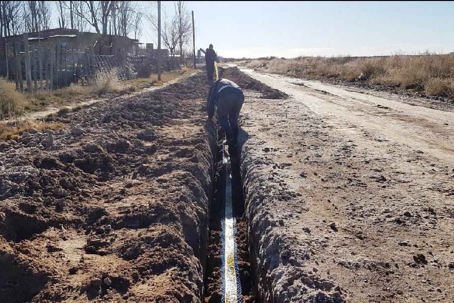 La empresa estatal Aguas Rionegrinas prestó colaboración con la comisión de fomento de El Cuy para la instalación de una extensión de cañería destinada a mejorar el servicio.